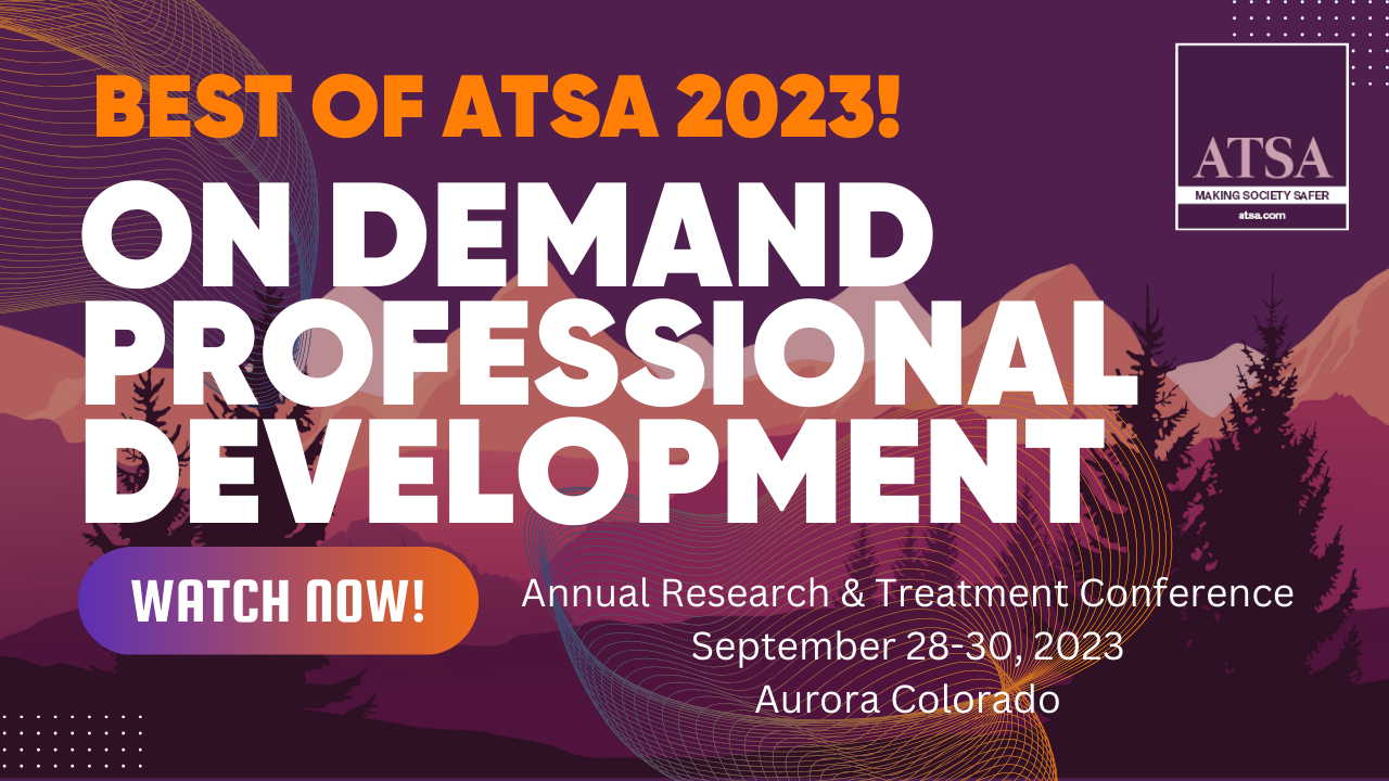 Missed ATSA's 42nd Annual Research & Treatment Conference? For $115, you can rent three plenary sessions and three of the hottest concurrent sessions for a 60-day viewing period!